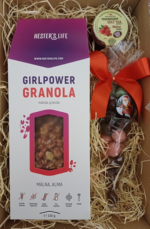 Málnás granola, drazsé, sült tea